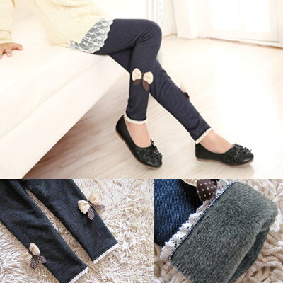 リボンをあしらった、キュートなデザインのあったかい女児用レギンスパンツです。